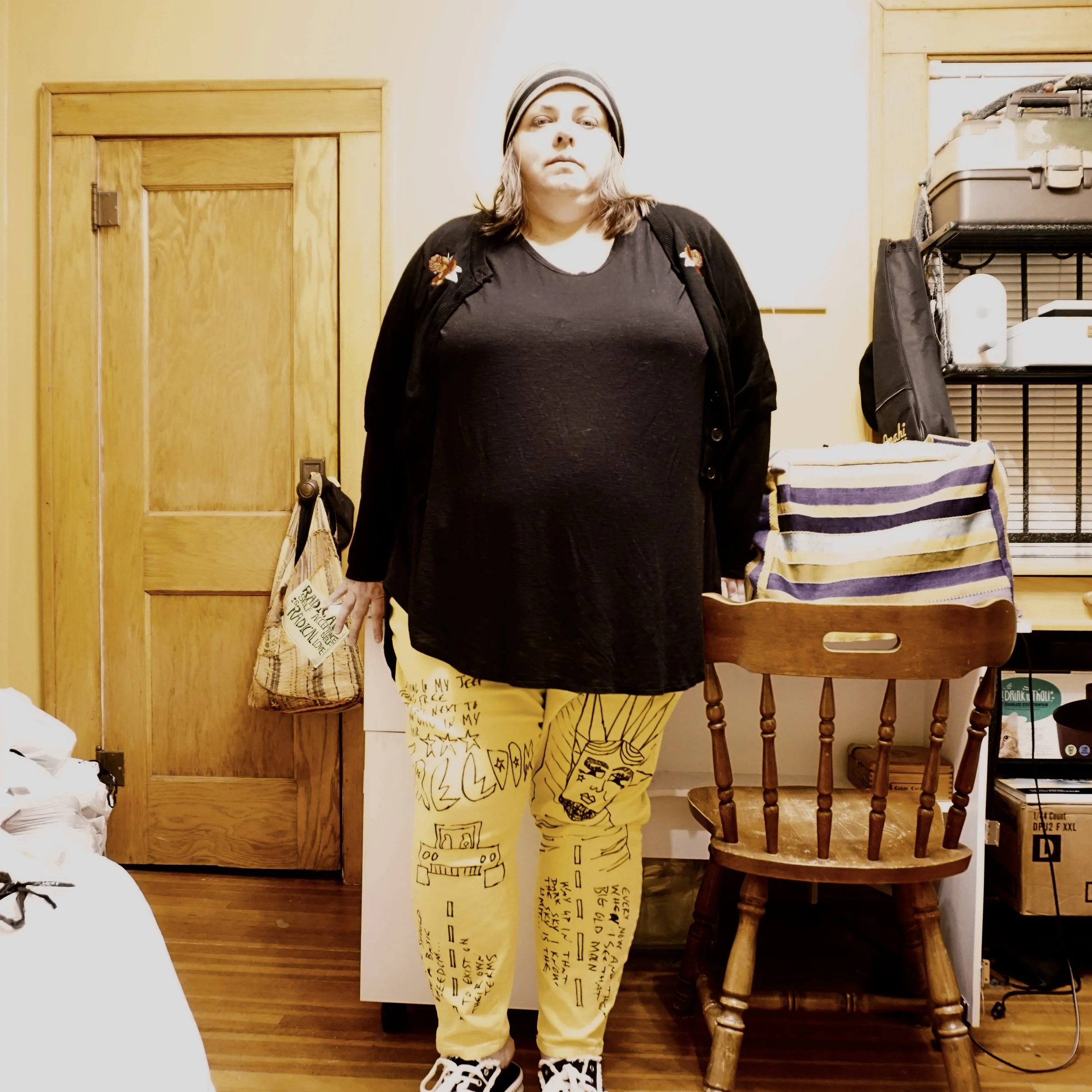 I’ve been a fan of Alisa Burke for years! I’ve signed up for tons of her classes, and some of them have inspired entire series of paintings. For the New Year, I signed up for one of her vintage classes called “Redefine Creativity”. The class is about drawing and painting on unusual objects and surfaces instead of just paper or canvas. I’m really excited to start some surface design on the clothing I make! So I started by drawing on a pair of jeans. It was a really fun project, although it did take a bit of courage to actually try it out. I waited for just the right evening when I was bored and needed some adventure.