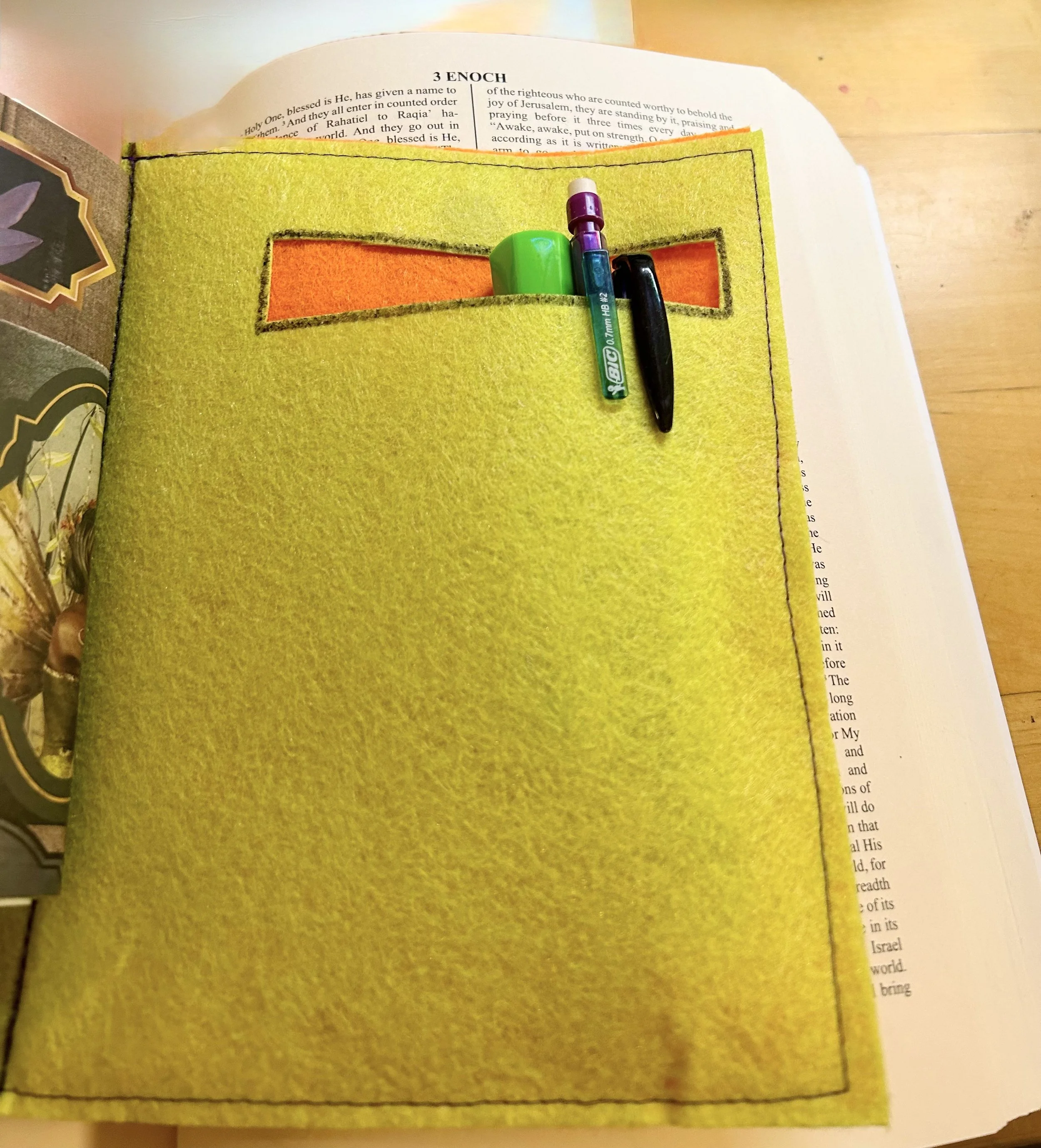 Back cover pocket of felt junk journal by Kat Sturges